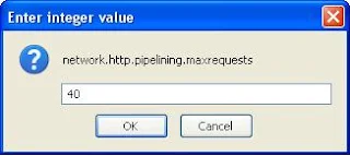5.selanjutnya klik double pada network.http.pipelining.maxrequests terus ganti angka tersebut 10 - 40 tergantung pada versi firefox yanga anda gunakan untuk firefox versi 3.0 - 14.1 isi dengan dengan angka 10-30 tapi saya sarankan untuk mengisinya dengan 30 & angka 40 untuk firefox versi terbaru 14.1 - versi terbaru
